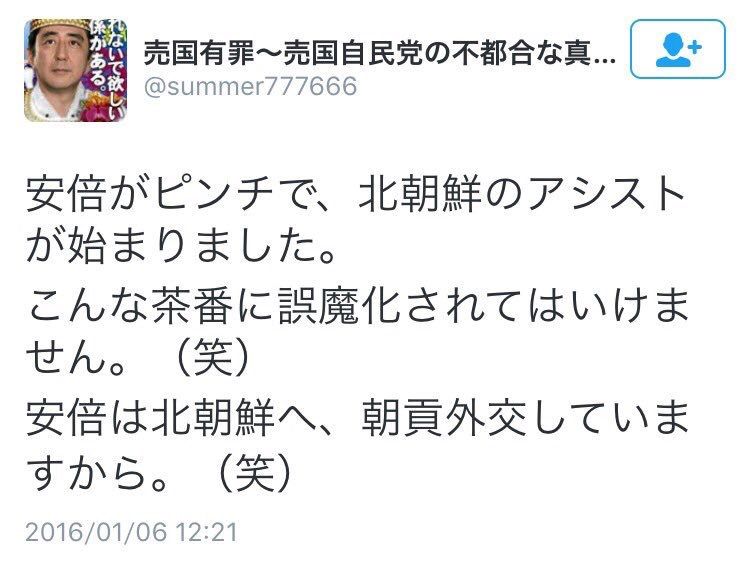 【バカッター】サヨク「水爆は安倍の陰謀 北朝鮮は安倍とグル」